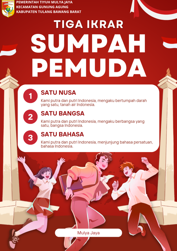 Selamat Hari Sumpah Pemuda 28 Oktober 2025! Mari kita kobarkan semangat persatuan dan cinta tanah air dari Tiyuh Mulya Jaya untuk Indonesia yang lebih maju. Bersama kita kuat, bersatu kita bisa.
